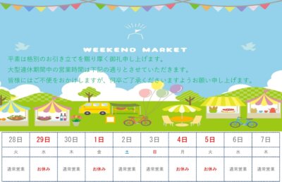 ※G.Wのお休みについては、別途掲載いたします。
