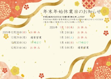 30(土)上記の日程でお休みさせて頂きますので、よろしくお願いいたします。